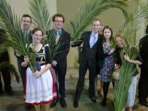 On Palm Sunday we had the privilege of carrying the palm with groups of other young people for the Palm Sunday liturgy at St. Peter’s Square. Some of the students did readings at the Mass which was a special day for all young people, the occasion of the celebration of the 27th World Youth Day. The theme of this year’s WYD was “Rejoice in the Lord always” (Phil 4:4). Pope Benedict XVI greeted all the youth who had travelled from many countries with a special message, encouraging them to make Palm Sunday a day of decision to follow Christ all the way – a decision that leads to true joy. The Holy Father gave young people the example of Saint Clare of Assisi, founder of the Poor Clares when, “on Palm Sunday 800 years ago, inspired by the example of Saint Francis and his first companions, she left her father’s house to consecrate herself totally to the Lord. She was eighteen years old and she had the courage of faith and love to decide for Christ, finding in him true joy and peace”.