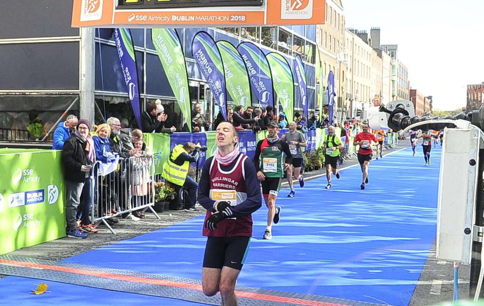 Finishing the Dublin Marathon, Sunday 28 October 2018.