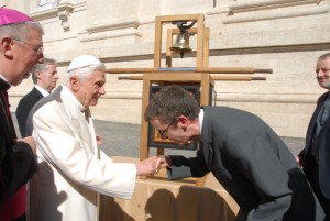 On Wednesday 14th March 2012, I had the wonderful privilege of meeting the Holy Father Pope Benedict XVI when I had the fantastic opportunity of accompanying a delegation from the International Eucharistic Congress, consisting of the Archbishop of Dublin Diarmuid Martin, the Secretary General of IEC2012 Fr Kevin Doran, and members of IEC2012 staff during the presentation of the Eucharistic Congress bell to the Holy Father. It was such a great privilege to represent the Irish Church at this special occasion, definitely one of the main highlights of my mission year so far. The bell was in Rome as part of preparations for the upcoming 50th International Eucharistic Congress – which takes place in Dublin from 10th-17th June.