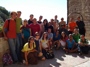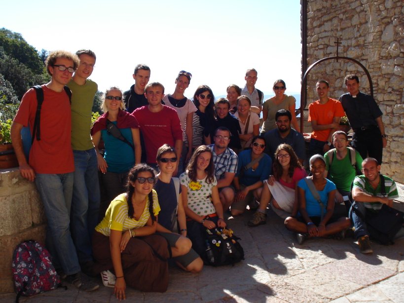 Just a quick update! I have now completed my first week at ESM Rome! And what a week it was! I arrived to meet twenty young enthusiastic student missionaries from 12 different countries from all over the world:- England, France, Germany, Portugal, Latvia, The Netherlands, Egypt, Australia, United States, Canada, Czech Republic and Kazakistan! The day after we arrived we all went by train in the early morning to Assisi for a six day retreat. It was a wonderful and very blessed week which was a most memorable start to my time here. We were soon immersed into the charisms of the community and had daily services, adoration and praise; while also taking part in drama, sport and many other community based activities. We were blessed with wonderful sunshine all week, it was hard to believe it’s October – it seemed rather like the middle of summer! In Assisi it was such a privilege to grow in deep knowledge of the richness of the lives of Saint Clare and Saint Francis – we were even priviliged to be present there on the feast day of Saint Francis which was a magnificent celebration. We stayed at a retreat house close to the Basilica of Saint Francis and had a beautiful Mass in an underground chapel of on the opening day of the retreat. We also had a tour on the Basilica and a presentation on the life of Saint Francis & the founding of the Franciscan order. One of many highlights was attending the 6am Mass on his feast day in the Chapel where his tomb lies. We visited the Basilica of Saint Clare and I prayed at her tomb for all the Poor Clares, especially those in Ireland as they celebrate 800 years of the order. We also went to San Damiano – the first monastery of Saint Clare where Clare established the order. It was a beautiful place for silent prayer and reflection. We visited the dormitory where Clare slept, and saw the small chapel where the sisters prayed. We visited San Rufino, the cathedral of Assisi, where Clare was baptised and Francis probably as well. We also had many outdoor activities in the course of the week and undertook a pilgrimage walk on the trails of Saint Francis, visiting the hermitages of the Carceri, above Assisi, where Francis and his early brothers in the order went to pray alone, living in small caves. Overall these days of retreat were very special and the memories will remain in my heart for some time to come. Saint Francis and Saint Clare, pray for us.